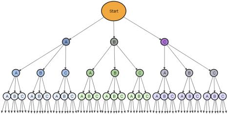 Virtual patients are dependent on choice. If a VP is created with 3 choices at each level, within just 4 levels there have been over 100 situations which the user may have entered.