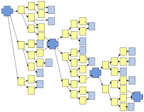 Here you will need to think what might be reasonable in a real situation, and use this as the basis for naming the choices. The pattern of empty boxes (stage 4) might not reflect real life, and the pattern can, to some extent be adjusted with boxes added or removed where essential. Further connection may also be made at this stage, including alternative routes through the case.