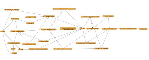 In order to navigate between nodes, a map of different interconnected possibilities is designed, typically with 3-4 steps and 3-4 choices at each step. Choices at each step mimic some of the choices that would be available for a real patient. Many of these would not allow progress to the next node.